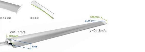 通過空氣動力學(xué)仿真分析,應(yīng)用等弦長理論,結(jié)合相對線速度原理,研發(fā)設(shè)計(jì)出流線型變截面扇葉,葉根到葉尖逐漸變窄變薄,受力更平衡,送風(fēng)更均勻,且中心無空洞。